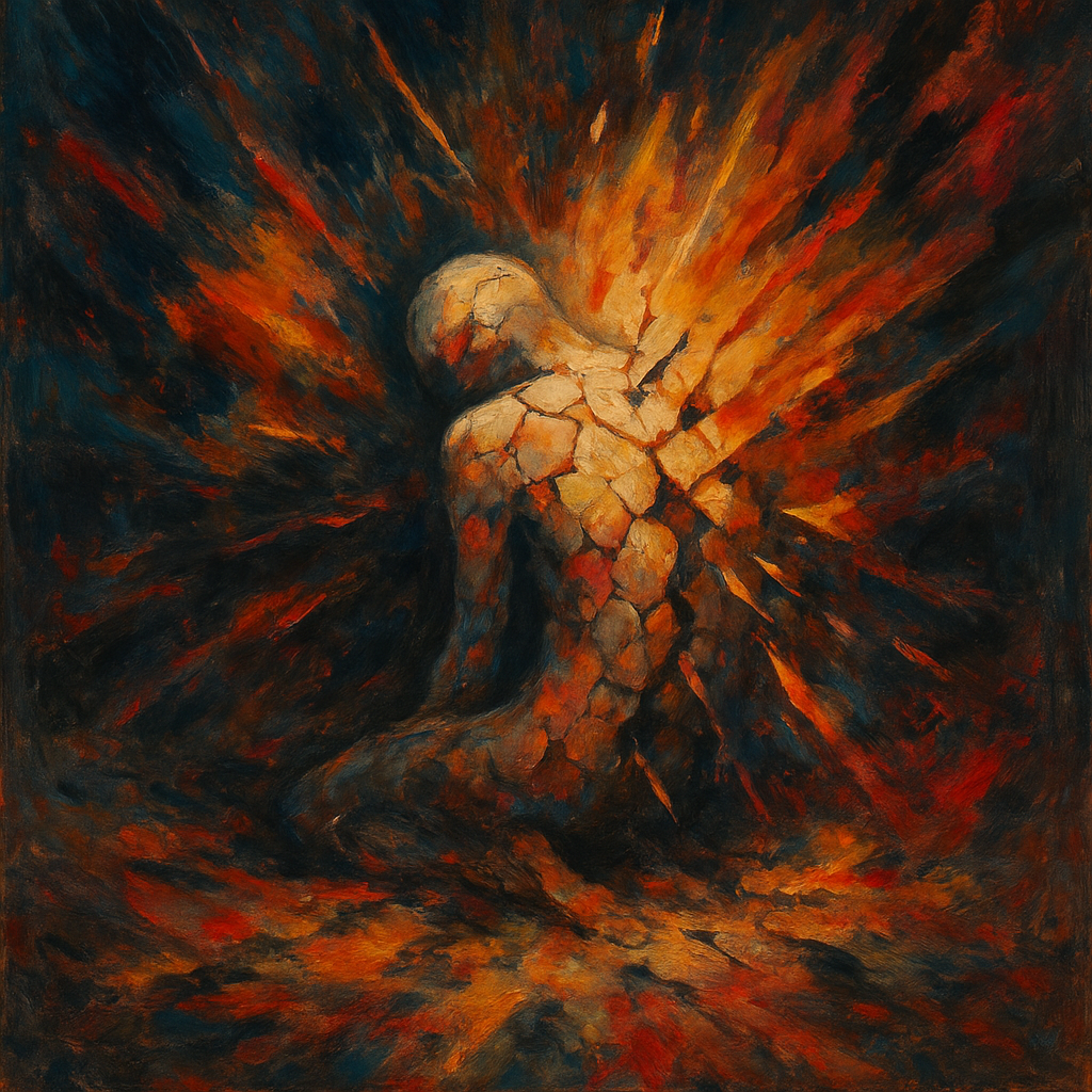 Brisance (n.): The shattering force of an explosive; by extension, the sudden breaking or fragmentation of something once whole.