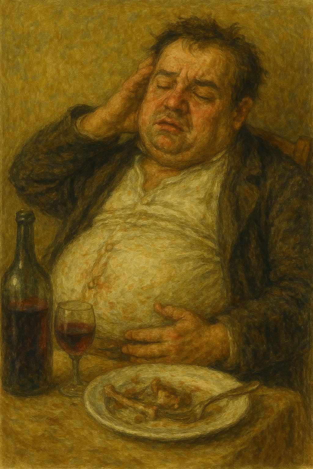 Crapulous (adj.): Sick or lethargic from excessive eating or drinking, especially after indulgent feasts.
